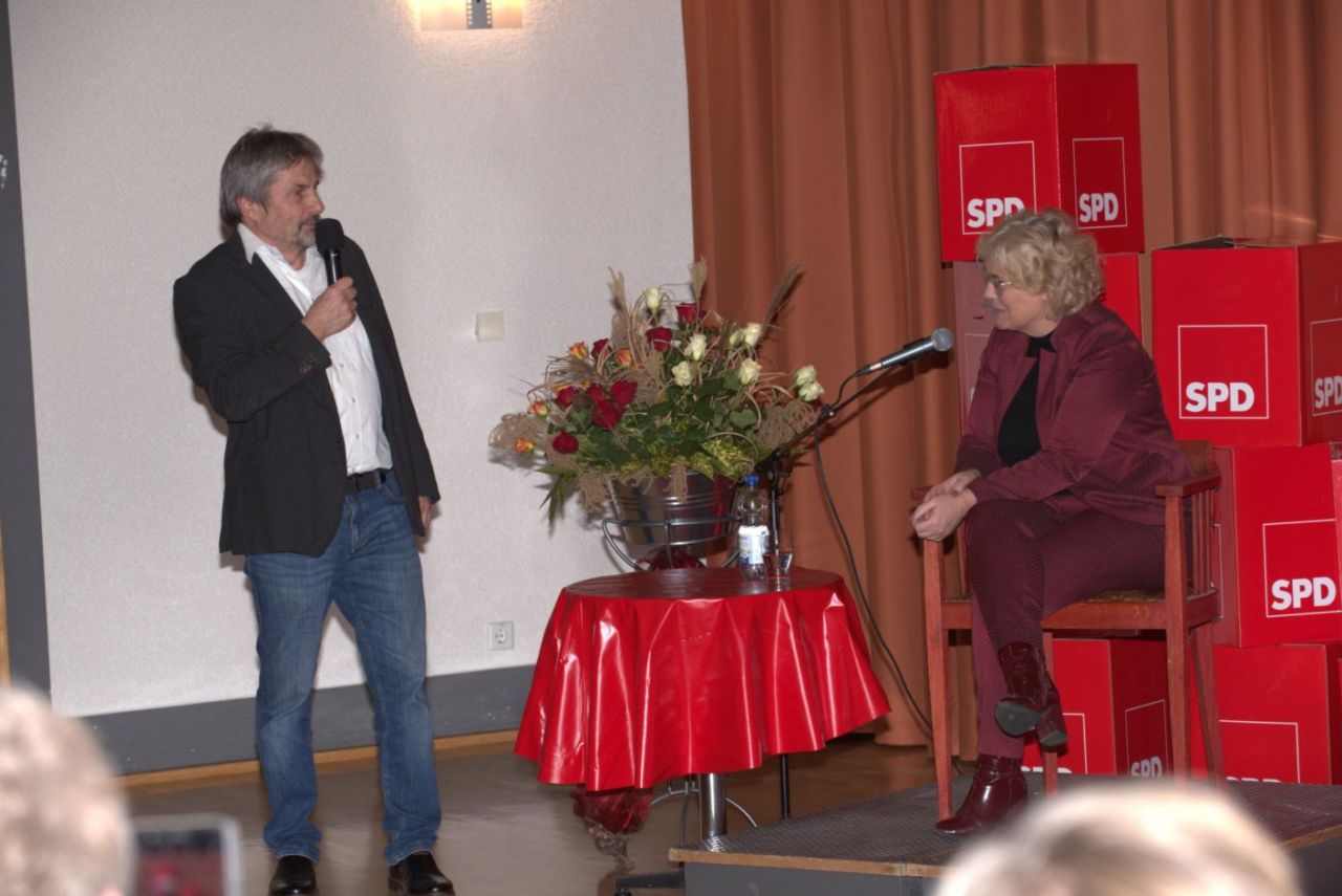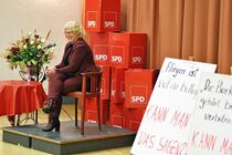 Aufmacher war die Aufregung um die Satire "Unsere Oma ist ne alte Umweltsau". Rund 100 Besucher waren gekommen, um mit der Justizministerin über "Hatespeech" und die Verrohung der Sprache zu diskutieren. Plakative Parolen auf alten Plakatständern gaben die notwendigen Gesprächsimpulse.