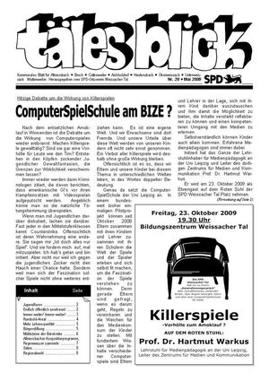 Nach dem entsetzlichen Amoklauf in Winnenden ist die Debatte um die Wirkung von Computerspielen wieder entbrannt. Machen Killerspiele gewalttätig? Sind sie gar eine Vorhölle für Leute wie den Tim? Entstehen in den Köpfen zockender Jugendlicher Gewaltfantasien, die Grenzen zur Wirklichkeit verschwimmen lassen? Immer wieder werden dann Kriminologen zitiert, die davon berichten, dass amerikanische GI''s vor ihren Kampfeinsätzen mit Videospielen aufgeputscht werden. Angeblich könne man so die natürliche Tötungshemmung überspielen.