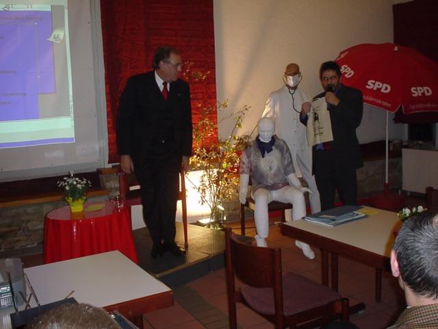 Power-point-Präsentation über die Probleme des Gesundheitswesens, Live-Interviews mit Betroffenen, rund 100 Besucher, starke Präsenz der örtlichen Gesundheitspartner, Infos-Stand der AOK